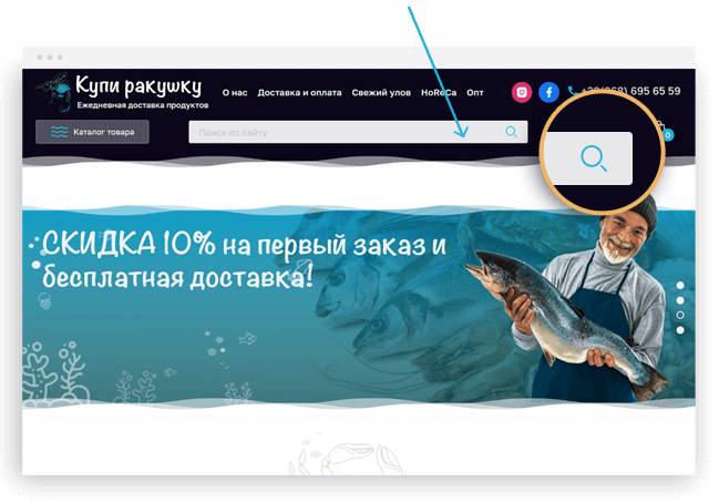 2. Найдите необходимые товары с помощью поля поиска