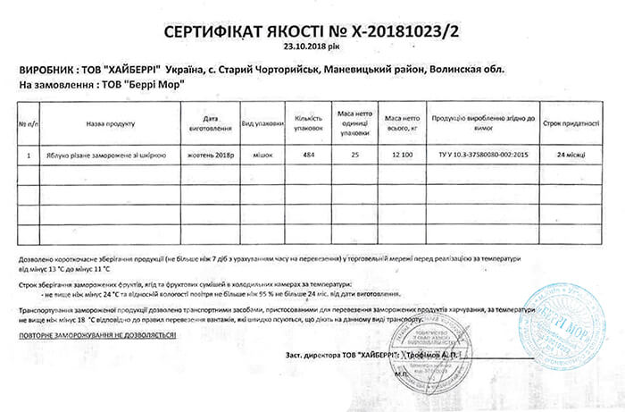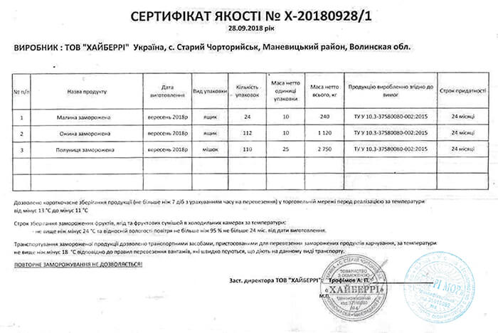 Сертификаты качества